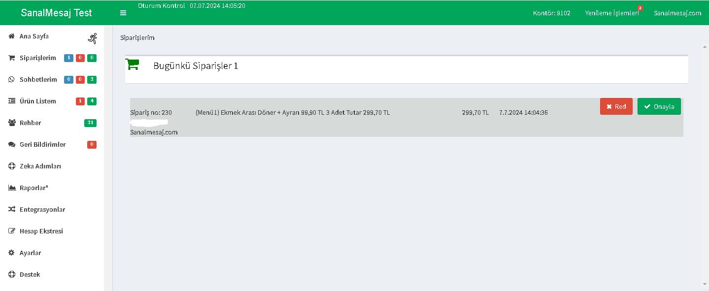 Onaylanan siparişin ise müşteriye paket yola çıkarıldı mesajı iletmek için Gönder Kurye ile tamamlayabilirsiniz.